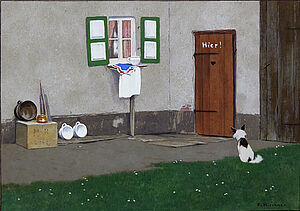 Mischtechnik: Entwurfszeichnung für die Fliegenden Blätter (Hinterhofszenerie)