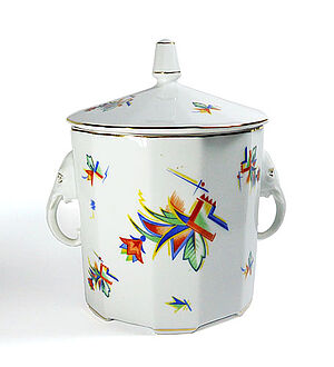 Porzellandeckeldose mit Elefantenkopfgriffen
