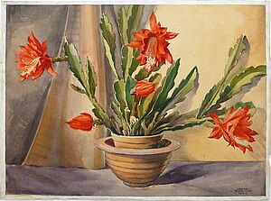 Gouache: ohne Titel (blühende Kaktenen im Topf)