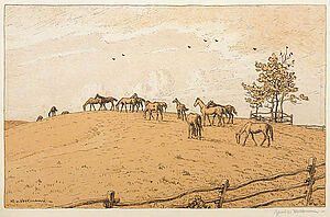 Lithografie: o.T. (Pferdekoppel)