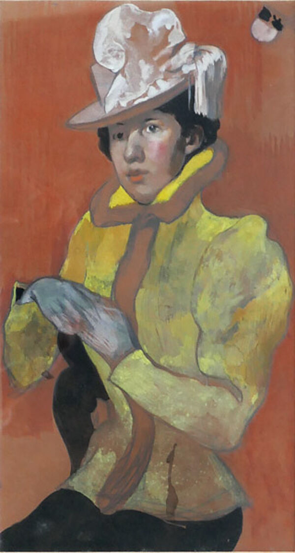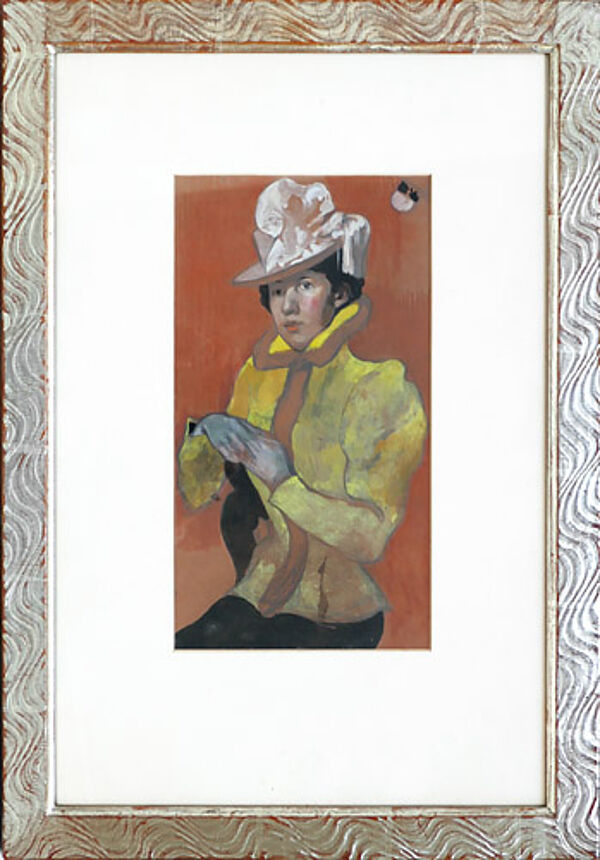 Aquarell: ohne Titel (Halbportrait einer sitzenden, jungen Dame mit Hut)