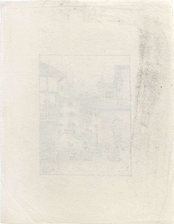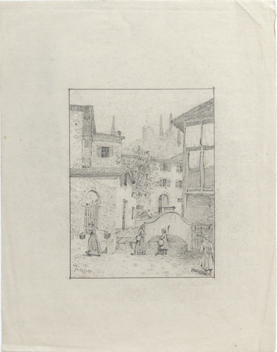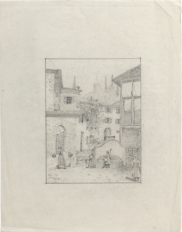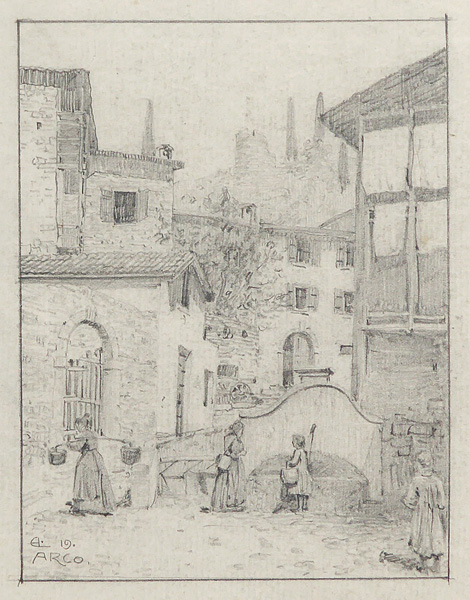Bleistift auf dünnem Papier, links unten monogrammiert "E.L.", datiert (19)"19" und ortsbezeichnet "Arco". Bildmaße ca. 14,6 x 11 cm, Blattmaße ca. 27,2 x 21 cm, deutlichere Knickspuren am rechten Blattrand außerhalb der Darstellung, ansonsten geringe Griff- und Altersspuren.