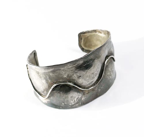 Die Technik des getriebenen, im Randbereich umgeschlagenen Silberblechs hat u.a. auch Erich Heckel verwand, siehe hier seinen Armreif von 1912 auf S. 99 in "Nur für ihre Frauen - Schmuck von Karl Schmidt-Rotluff, Emil Nolde, Erich Heckel und Ernst Ludwig Kirchner", herausgegeben von Katja Schneider, Halle 2003.