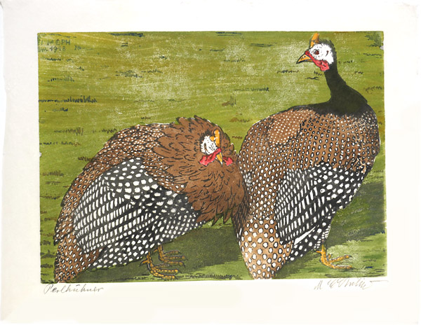 Farbholzschnitt auf Japan, im Stock links oben monogrammiert "MEPH" und datiert "1918". Rechts unter der Darstellung mit Bleistift handsigniert, links betitelt. Bildmaße ca. 29,5 x 21 cm, Papiermaße ca. 35,5 x 27,5 cm, geringe Alters-, Griff- und Lagerspuren. Nicht im WVZ Götze.