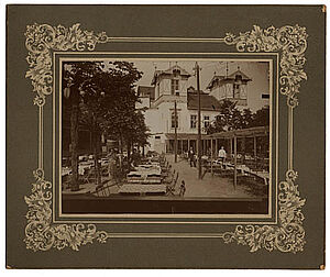 Albuminabzug: Biergarten des Schlossrestaurants Miramar / Chemnitz von 1908