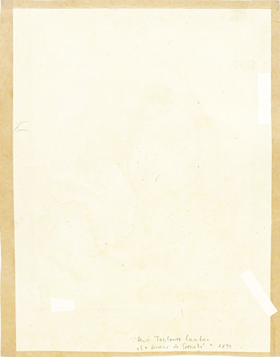 Lithografie auf Velin, im Stein mittig unten monogrammiert. Abbildungsmaße ca. 20 x 15 cm, Blattmaße ca. 30,5 x 24 cm. Das Blatt ist diskret fleckspurig, es zeigen sich drei kleine hinterklebte Einrisse im Randbereich, rückseitig Reste einer alten Montierung, im alten Passepartoutausschnitt leicht aufgehellt.