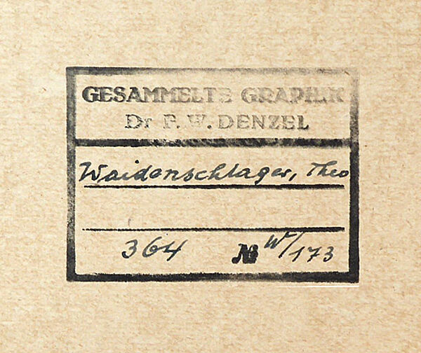 Auf der Unterlage alter Sammlungsstempel: "GESAMMELTE GRAPHIK DR. WILHELM DENZEL", hier handschriftliche Benennung des Künstlers sowie Nummerierung "364" bzw. "W/173".