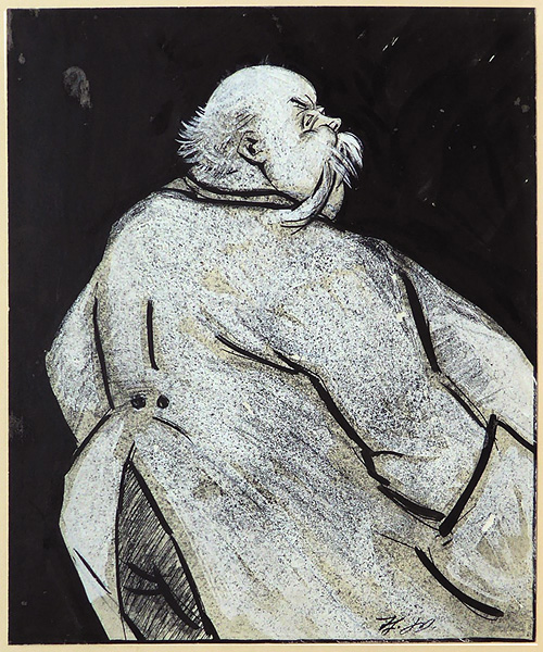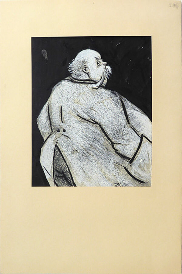 Mischtechnik auf dünnem Karton, rechts unten monogrammiert, Blattmaße ca. 26,8 x 22 cm, Passepartout ca. 47,8 x 32 cm. Wohl um 1910 bis 15, evtl. Illustrationsvorlage für die Zeitschrift "Jugend", für die Waidenschlager tätig war.
