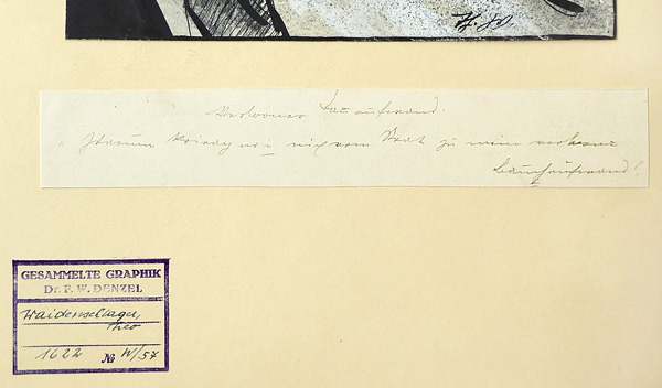 Auf der Unterlage alter Sammlungsstempel: "GESAMMELTE GRAPHIK DR. WILHELM DENZEL", hier handschriftliche Benennung des Künstlers sowie Nummerierung "1622" bzw. "W/57".