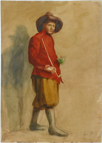 Mischtechnik (überwiegend Tempera) auf chamoisefarbenem Papier, rechts unten datiert "Jan. (18)98". Blattmaße ca. 49,7 x 35,6 cm, geringe bis allenfalls moderate Alters-, Griff- und Lagerspuren, insbesondere rechts unteren Eckknick. Das Blatt stammt aus einem Konvolut von Arbeiten von M. Freudenberg.