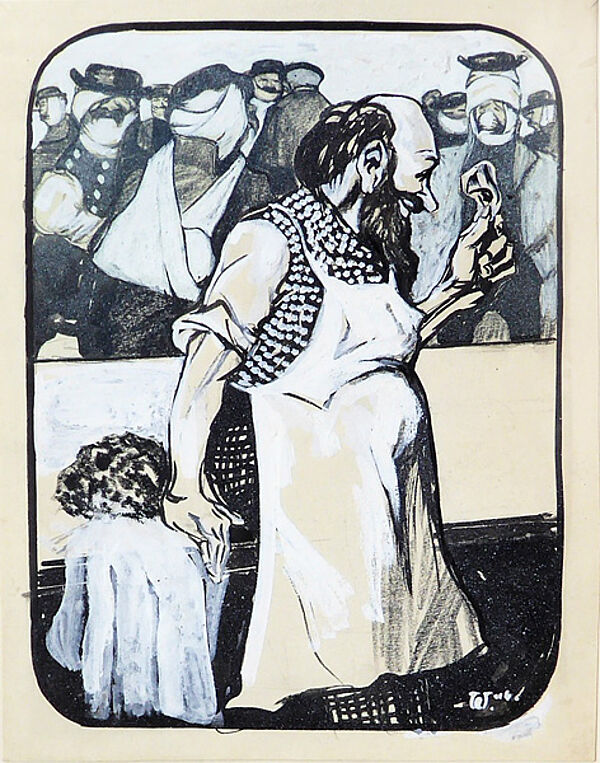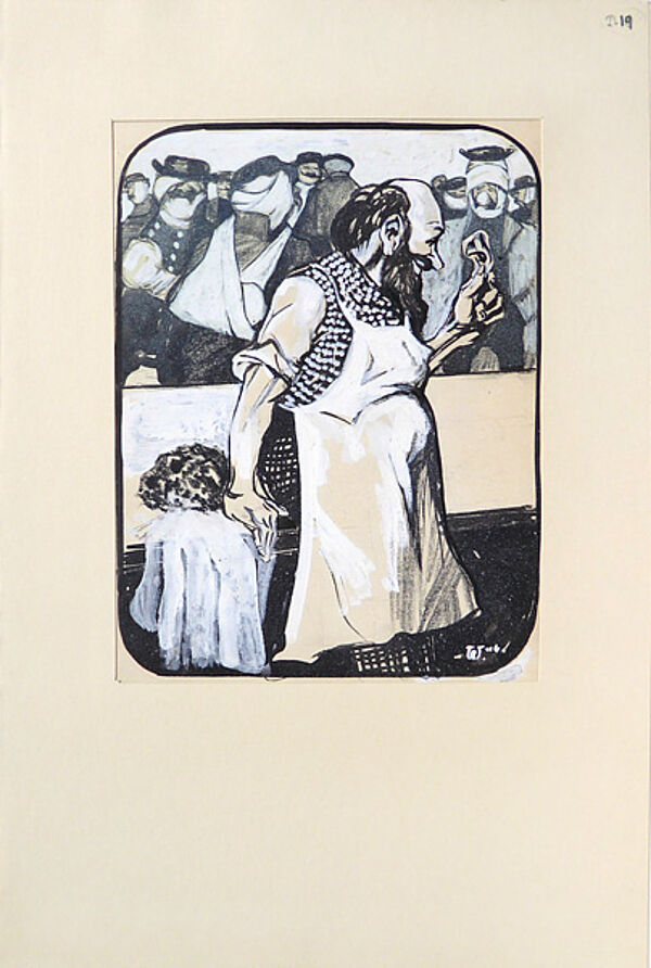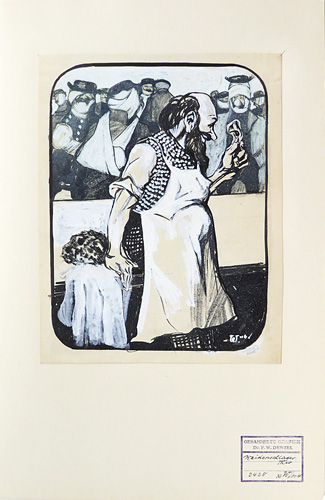 Mischtechnik auf dünnem Karton, rechts unten monogrammiert. Blattmaße ca. 29 x 23 cm, geringe Alters-, Griff- und Lagerspuren. Wohl um 1910 bis 15, evtl. Illustrationsvorlage für die "Jugend" für die Waidenschlager tätig war.
