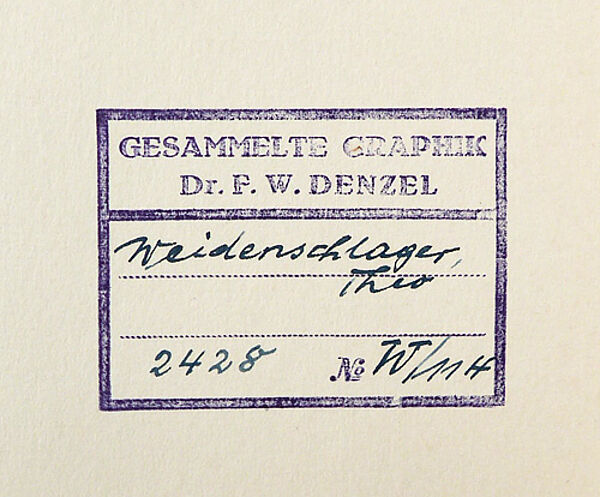 Auf der Unterlage alter Sammlungsstempel: "GESAMMELTE GRAPHIK DR. WILHELM DENZEL", hier handschriftliche Benennung des Künstlers sowie Nummerierung "2428" bzw. "W/114".