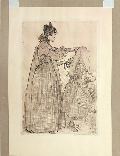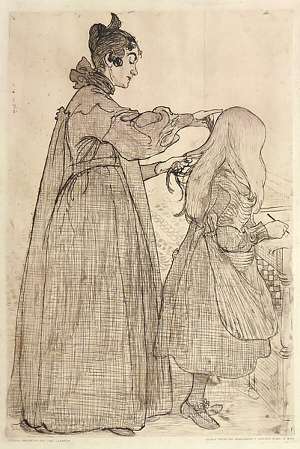 Blattmaße ca. 34 x 23,5 cm, Plattenmaße ca. 26,6 x 18,3 cm, geringe Altersspuren. Die Radierung erschienen 1905 in der Gesellschaft für vervielfältigende Kunst in Wien.
