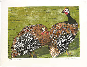 Farbholzschnitt "Perlhühner"