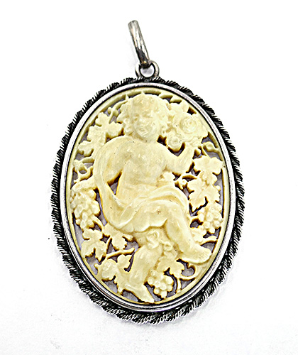 Silbern gefasster Elfenbeinanhänger mit Puttomotiv