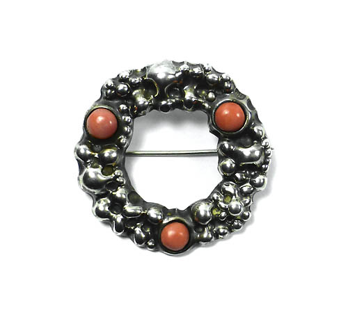 Silberne Brosche mit Korallen