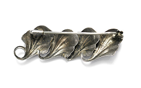 versilberte figürliche Brosche in Form eines Blätterreigens