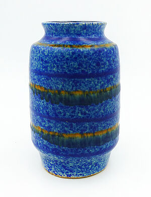 Vase mit blau-gelben Streifendekor