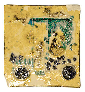 Kleines Fliesenbild: Oldtimer mit Brautpaar und Amorputten
