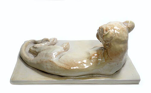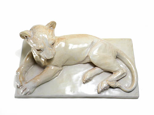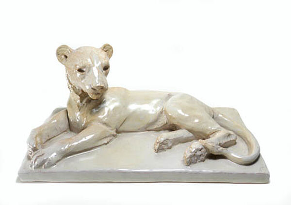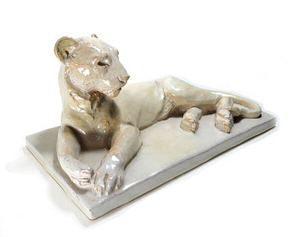 Keramikskulptur: Liegende Löwin