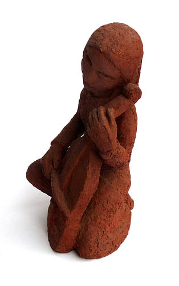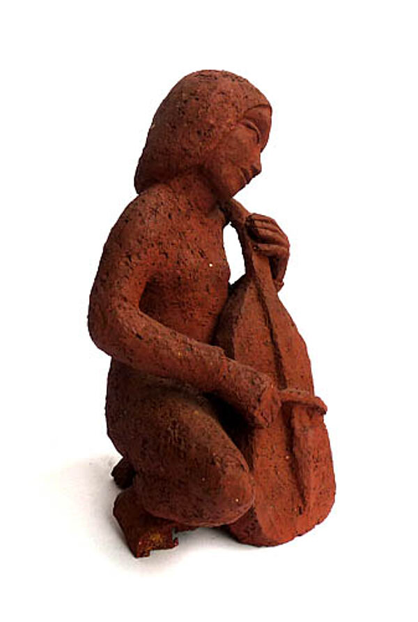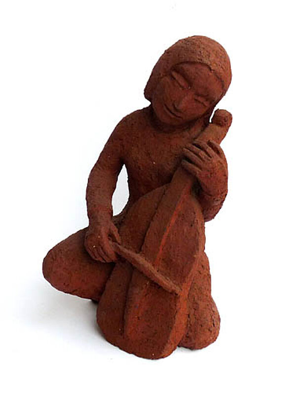 Keramikskulptur: ohne Titel (junge Frau mit Cello)
