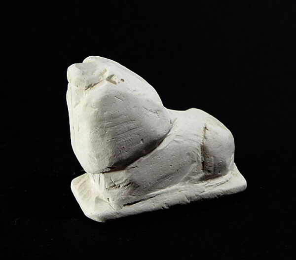 Per Hand geschnittener und modellierter, Gipskorpus - leicht abstrahierte Darstellung eines liegenden Löwen auf rechteckiger Plinthe. Maße ca. 3,3 x 1,5 cm, Höhe ca. 3 cm, geringe Altersspuren. Wohl 1940er bis 60er Jahre.