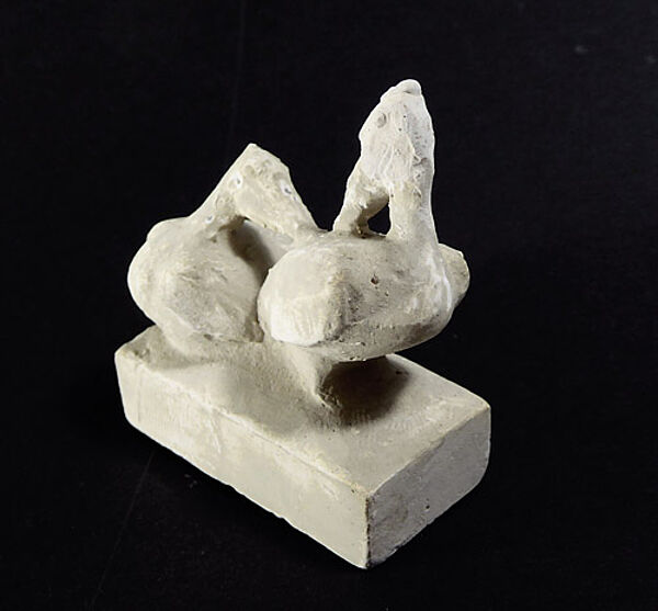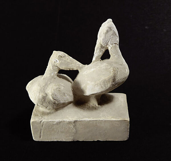 Per Hand geschnittener und modellierter, hellgrau gefasster Gipskorpus - zwei Pelikane auf rechteckigem Sockel. Maße Sockel ca. 5,5 x 2,7 x 1,5, Gesamthöhe ca. 6,5 cm, geringe Altersspuren. Wohl 1930er bis 50er Jahre.