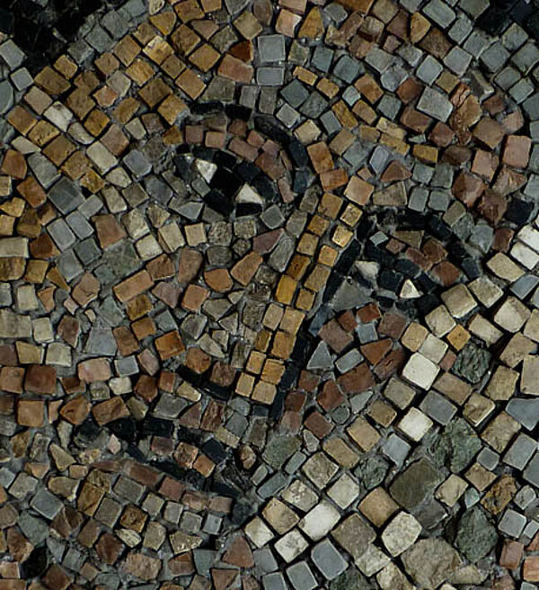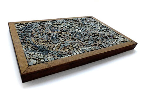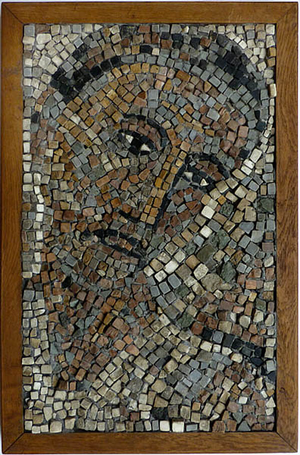Natursteinmosaik im Eichenholzrahmen, mit Metallplatte hinterlegt. Außenmaße ca. 67 x 43 cm, geringe Altersspuren. Rahmenbreite ca. 3,3 cm, Rahmentiefe ca. 4,5 cm, geringe Altersspuren. Wohl 1940er Jahre (in dieser Zeit betrieben Heinrich und Heinz Beberniß in Halle eine kleine Werkstatt für Mosaikarbeiten), unsigniert (Provenienz: Kunstauktionshaus Leipzig, Nachlass Heinz Beberniß). Ob der Entwurf nun von Heinrich Beberniß oder von Heinz Beberniß stammt, ist leider im Nachhinein nicht sicher zu klären, beide betrieben gemeinsam in den 1940er Jahren in Halle eine Mosaik-Werkstatt.