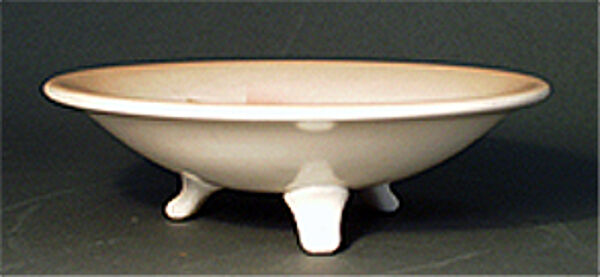 Relativ spitz nach innen weisender Schalenkorpus auf 3 Füßen.