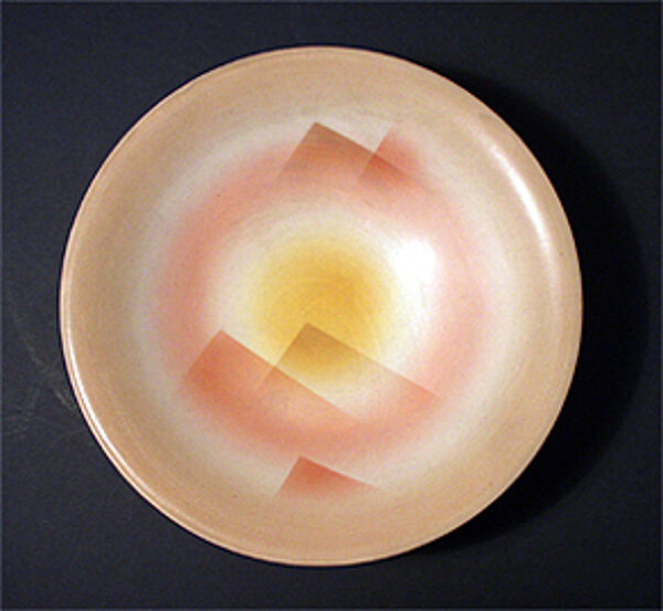 Aufgrund des typischen (Spritz-)Dekors wohl Carstens-Uffrecht zuzuordnen. Heller Scherben. D.: 19,5 cm. Kaum wahrnehmbarer, winzigster Chip am Rand der Schale, sehr guter Zustand. Bezeichnet: Dec. 3396; 2, wohl 20er Jahre.