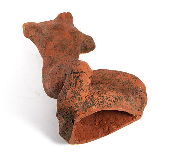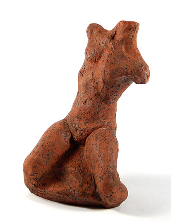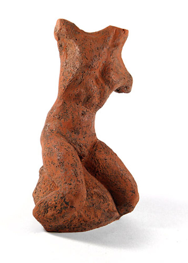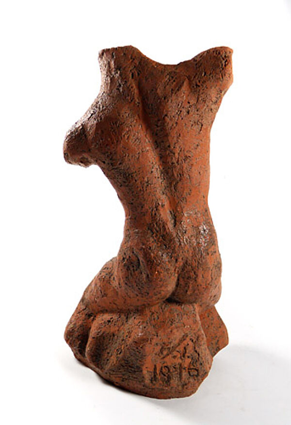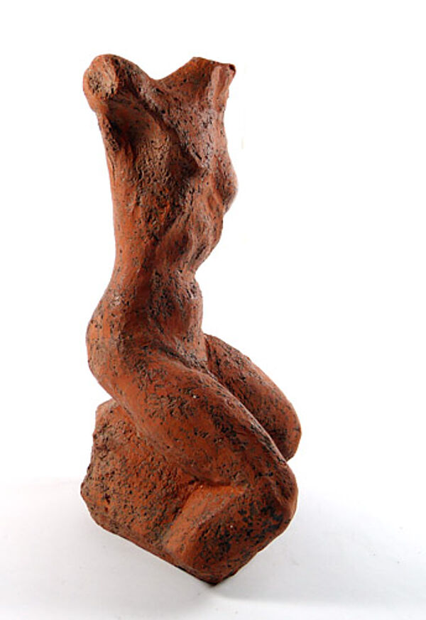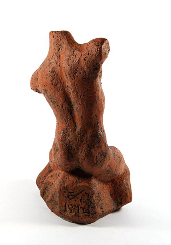 Rötlicher Keramikkorpus, rückseitig am unteren Rand monogrammiert (nicht aufgelöst) und datiert (19)"16". Höhe ca 21,5 cm, geringe Altersspuren.