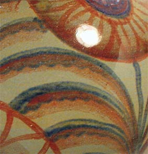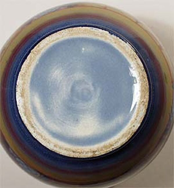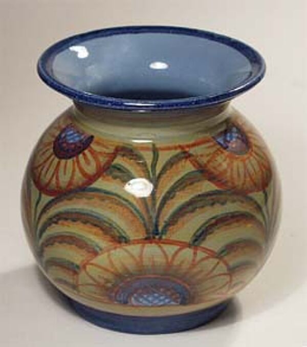 Kugeliger Korpus mit weit ausgestelltem Mündungsrand. Heller Scherben mit polychromer Glasur (stilisiertes florales Dekor). Höhe ca. 12 cm, Durchmesser der Öffnung ca. 9 cm, minimalste Gebrauchsspuren. Ungemarkt, wohl Deutschland oder Österreich um 1915/20.