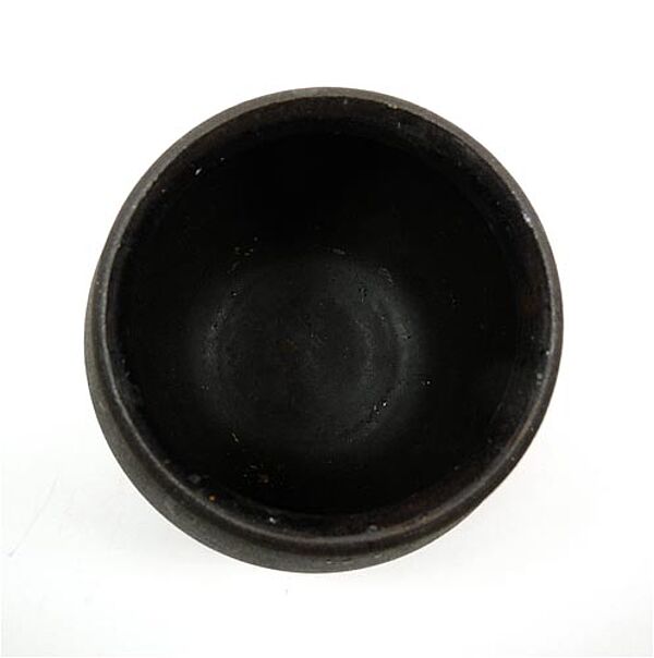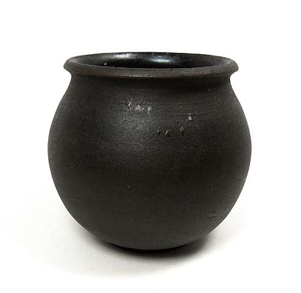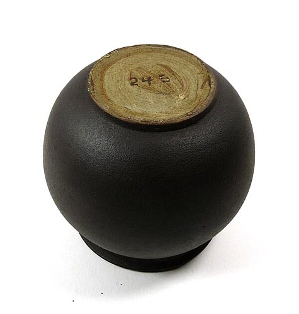 Flach gebauchter Korpus mit leicht ausgestelltem Mündungsrand. Hellbrauner Scherben, dunkelbraun engobiert. Höhe ca. 10 cm, geringe Gebrauchsspuren. Ungemarkt, unterseitig Form- oder Dekor-Nummer "245". Wohl 50er Jahre.