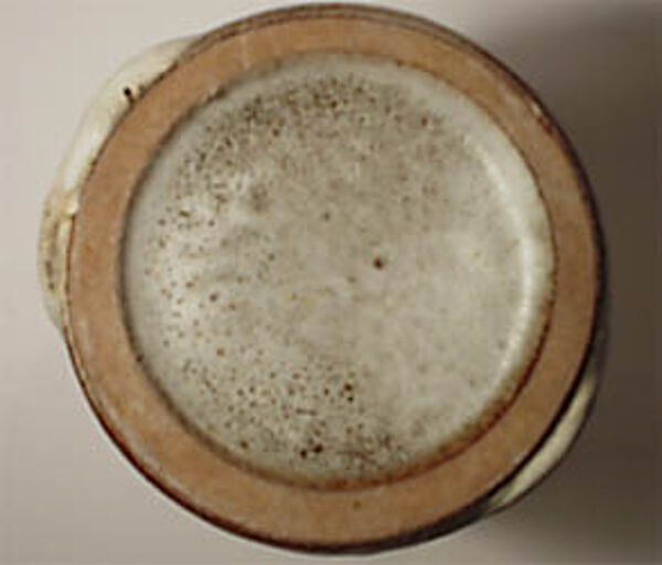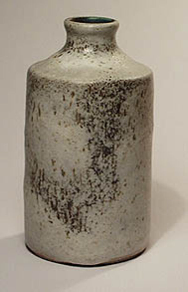 Angedeutet Flaschenform, dicke, helle Glasur. Höhe 14 cm, minimale Gebrauchsspuren. Ungemarkt oder die Marke ist von Glasur überdeckt. Vermutlich 60er / 70er Jahre.