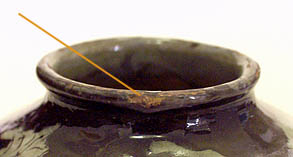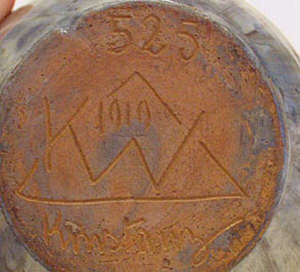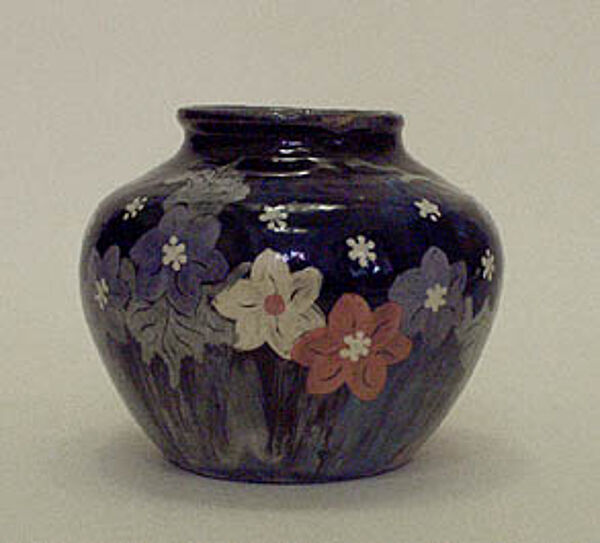 rötlicher Scherben, florales Dekor, H. 11cm; kleine Abschürfungen am oberen Rand, 0,5cm kleine Abplatzung am Korpus, gemarkt KW 1919 Konstanz = Keramikzentrum Konstanz, Entwurf Schmidt-Pecht / Albert Schatz, 1919