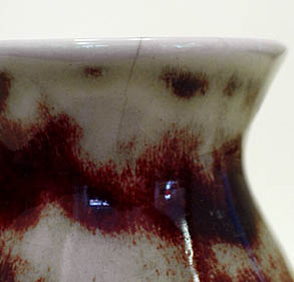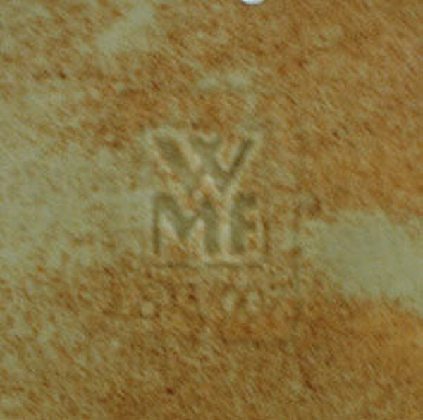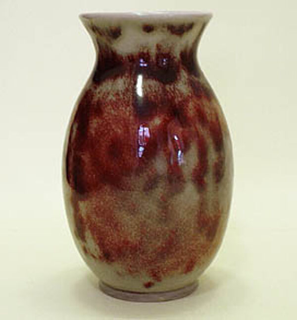 grauer Scherben, beige-grau-rot geflammte Glasur, H. 20 cm, Haarriß an der Mündung, gemarkt WMF, Modellnr. 813/007, 1930er