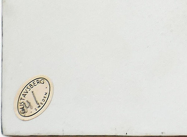 "Lisa Larson ist einer der bekanntesten Vertreter des berühmten schwedischen Keramik-Designs des 20. Jahrhunderts. Sie ist bekannt für ihre warmherzigen, humoristischen und manchmal subtil ironischen Entwürfe. Von 1954 bis 2008 arbeitete sie für den schwedischen Porzellanhersteller Gustavsberg. Die Fliese bzw. Wandtafel wurde dort um 1960/61 als Teil der Unik-Serie entworfen. Jede Fliese bzw. Wandtafel wurde von Hand dekoriert und somit einzigartig (zitiert aus lisalarsonsweden.com/home/en 08/18).