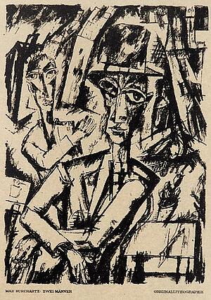Expressive Lithografie: "Zwei Männer" von 1919