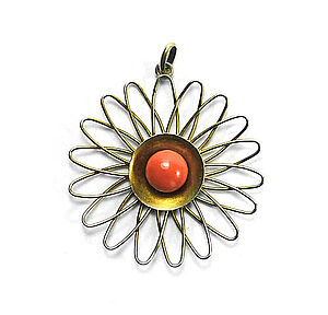 Silberne Brosche mit Korallen in Form einer Blüte