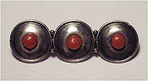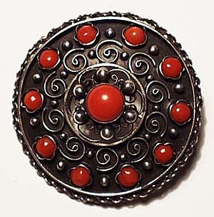 Silberne Brosche mit Korallen