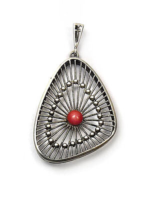 Silberne Brosche mit Koralle