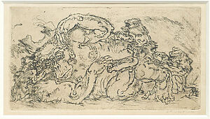 Radierung: ohne Titel (Elegante Dame mit Hund)