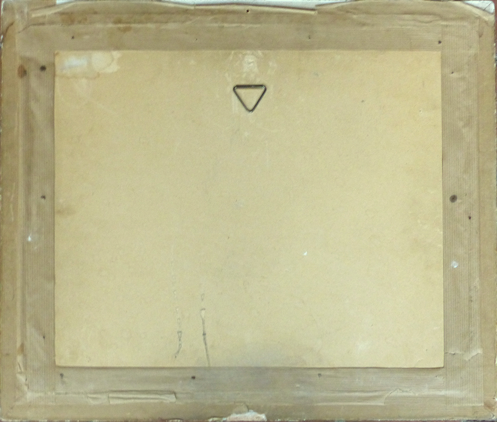 Mischtechnik auf dunkel-chamoisetonigem Papier. Hinter originalem, Gold abgesetztem, teilweise hell-gremfarbigem, teilweise ockerfarbenem Passepartout in originaler Goldstuckleiste mit den Außenmaßen ca. 40 x 45 cm, Sichtmaße ca. 19,5 x 25 cm, geringe Altersspuren. Der Stuck des Rahmens wurde professionell restauriert. Unsigniert und unbezeichnet, stilisitisch erinnert die Arbeit stark an Henri Stacquet (siehe u.a. das Aquarell mit Art.Nr. 9651). Wohl um 1880 bis 1900.