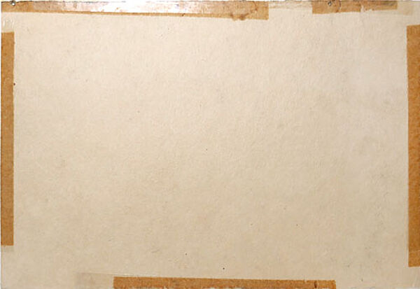 Aquarell auf Papier auf Kartonpassepartout geklebt. Bildmaße ca. 19,5 x 13 cm, rückseitig befinden im Randbereich Reste alter Klebestreifen, ansonsten eher geringe Alters-, Griff- und Lagerspuren. Vermutlich um 1947 / 48 - wir haben aus der Nachlassauktion Hellmuth Chemnitz eine Serie von 5 Blatt kleinformatiger Aquarelle erworben, die stilistisch und inhaltlich sehr ähnlich sind, eine dieser Arbeiten ist signiert und datiert, siehe Art.Nr.