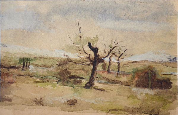 Aquarell: ohne Titel (flache Landschaft, vermutlich bei Leipzig)