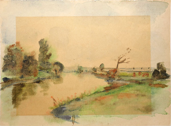 Aquarell: ohne Titel (Flusslandschaft, vermutlich bei Leipzig)