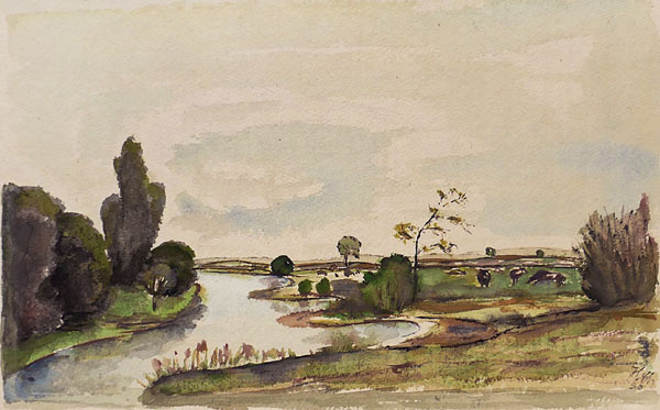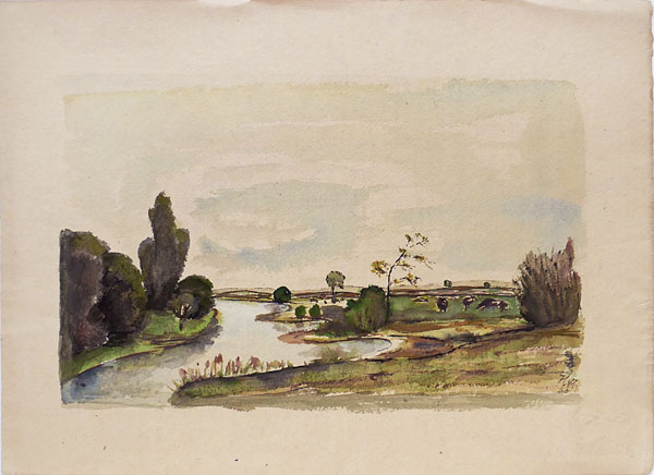 Aquarell: ohne Titel (Flusslandschaft, vermutlich bei Leipzig)