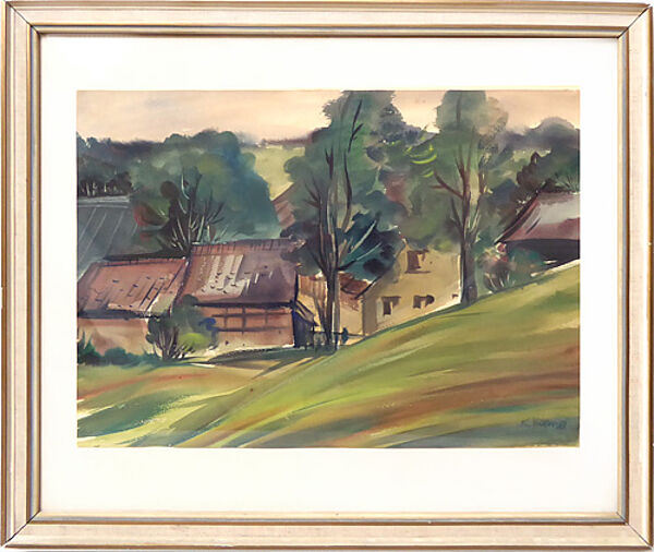 Aquarell auf Papier, rechts unten signiert und datiert (19)"53", gerahmt. Sichtmaße ca. 49 x 35 cm, Außenmaße der älteren, Kunststoff-beschichteten Holzleiste ca. 63 x 52,7 cm, geringe Altersspuren.