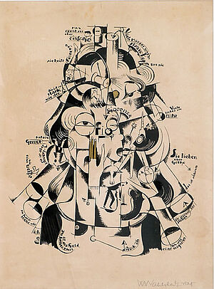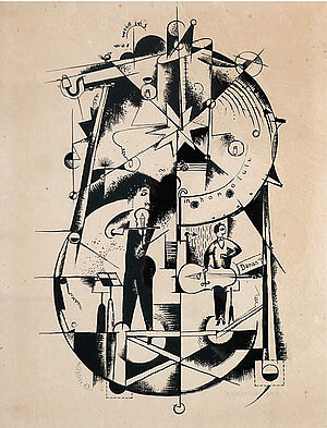 Lithografie: ohne Titel (dadaisitisch-kubistisch-figürliche Komposition)