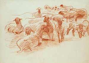 Rötelzeichnung o.T. (Schafherde)